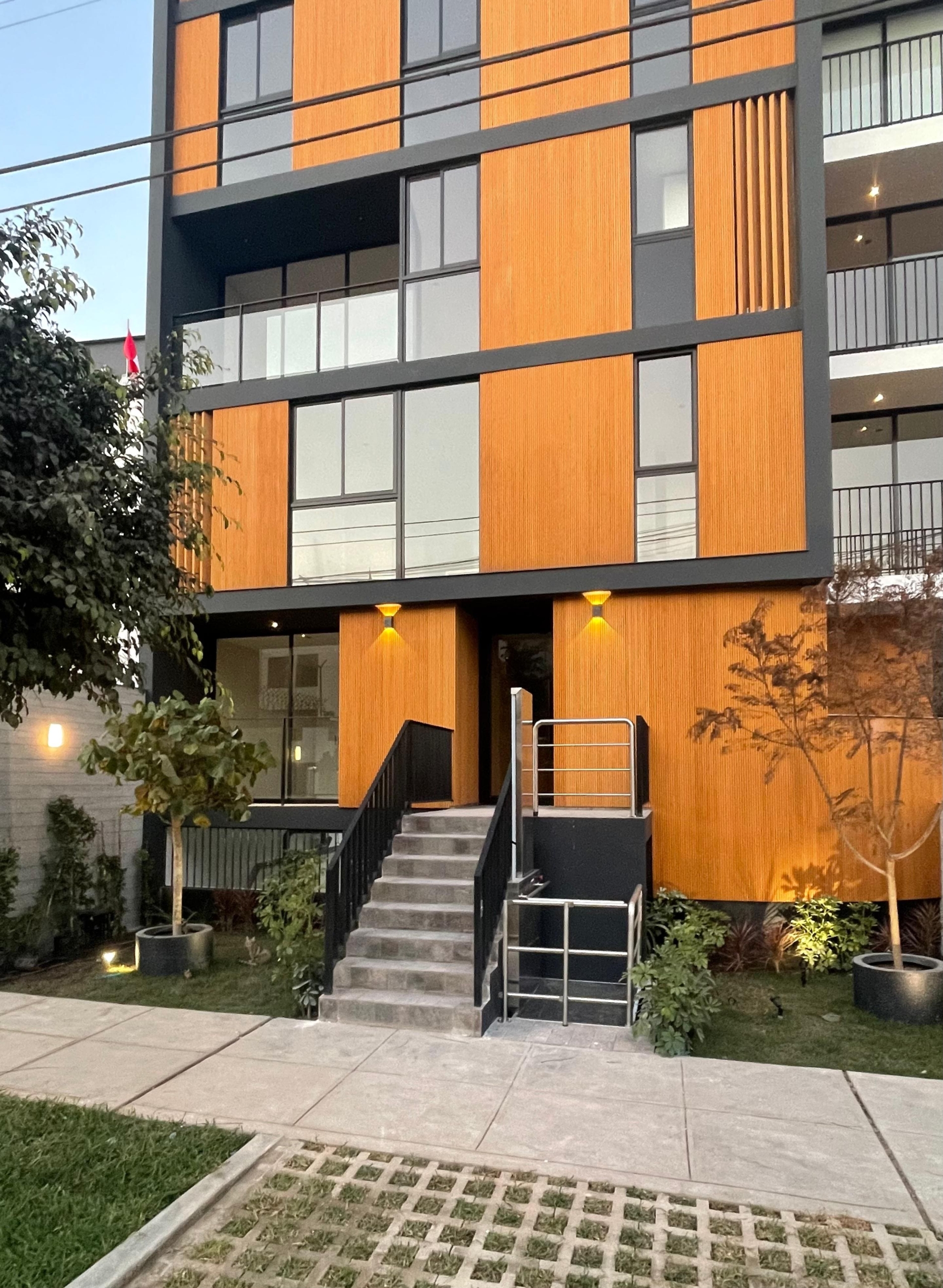 Proyecto Multifamiliar de 13 departamentos (8 Flats y 5 Duplex desde 70m2 hasta 157m2). Proyecto ubicado en Jr. Mar Peruano 244 – Urb. Neptuno – Surco, cerca al Jockey Plaza. Proyecto ecoamigable con aparatos sanitarios con ahorro de agua y áreas comunes con iluminación Led. Edificio en proceso de certificación Edge.